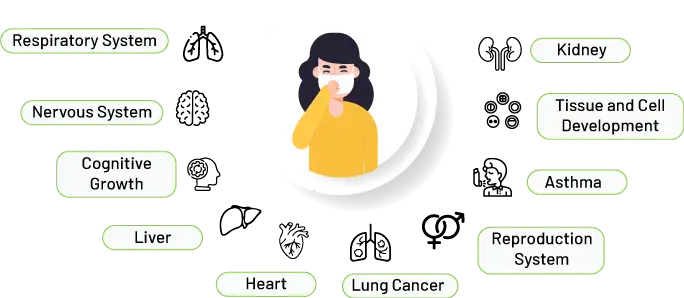 Our Pollution Health Check Package is meticulously crafted to assess the impact of pollution on your health. In today's world, harmful air pollutants saturate the atmosphere, posing a significant threat to human health. Prolonged exposure to these pollutants can lead to various complications, such as asthma and other respiratory diseases. The organs of the human body bear the brunt of consistent exposure to air containing harmful substances.